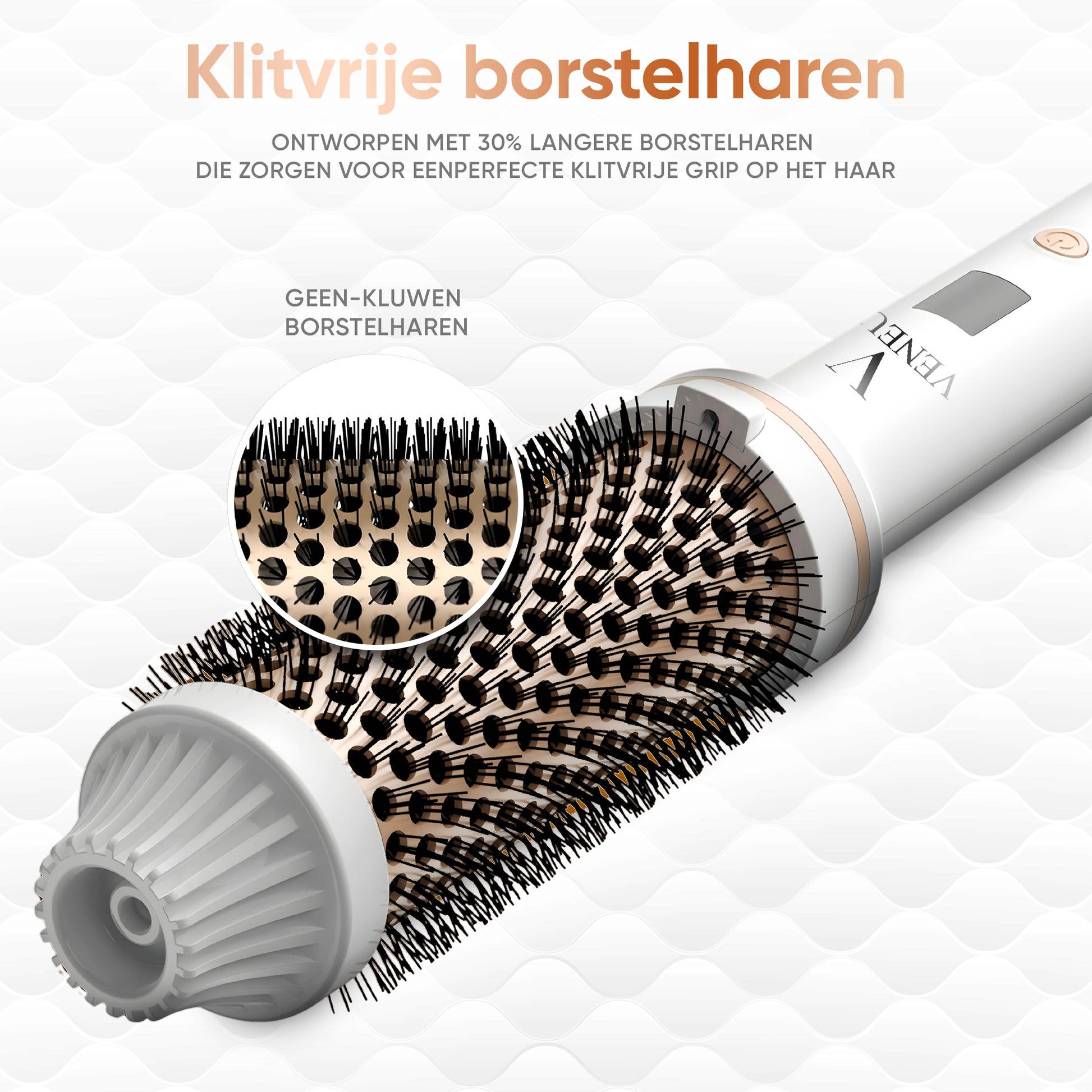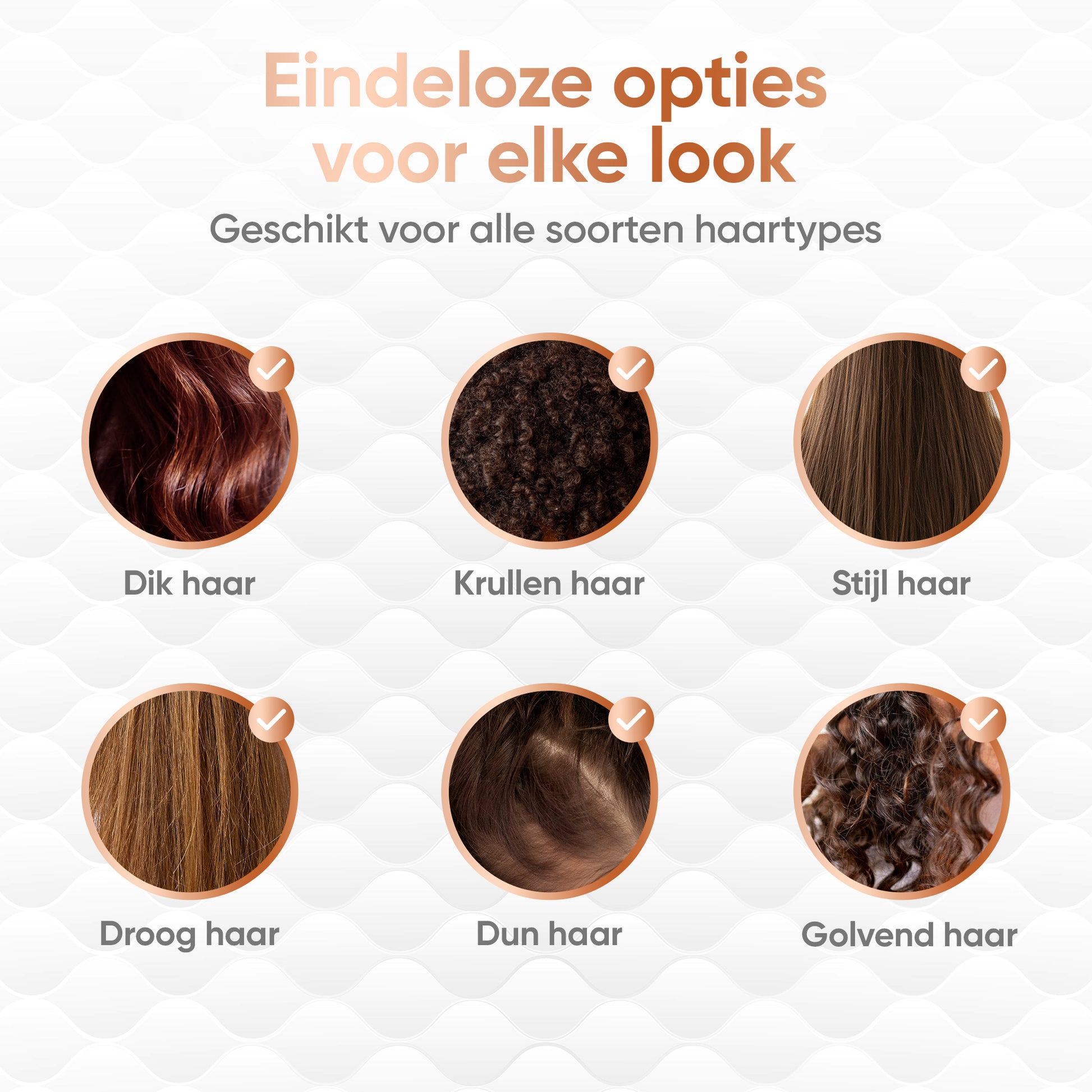 Toen we de Veneux® AirStyler ontwikkelden, hebben we ervoor gezorgd dat hij geschikt is voor alle haartypes. Ongeacht je haartype en -lengte, de AirStyler geeft je maximale flexibiliteit in je styling met zijn 5 verschillende opzetstukken.